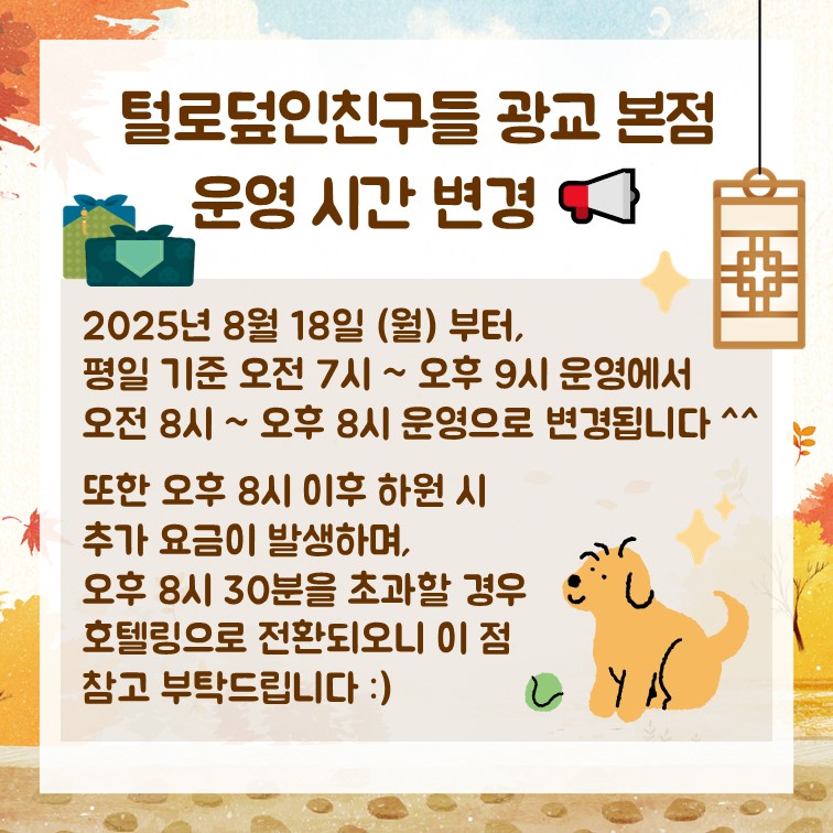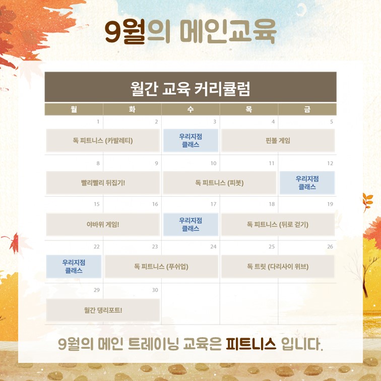 공지사항 털로덮인친구들 수원 광교점 9월 가정통신문 발행 [수원/영통/용인 애견유치원 털로덮인친구들 광교 본점]