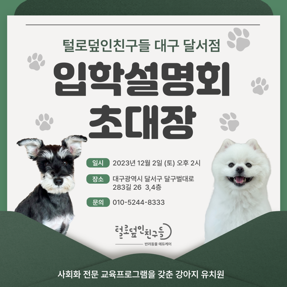 공지사항 12월 2일 털로덮인친구들 대구달서점 입학설명회가 진행됩니다